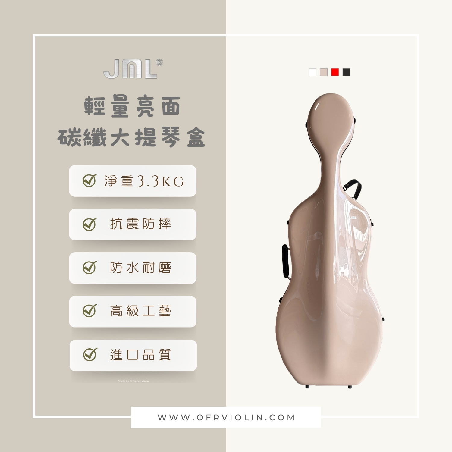 ✨JML 亮澤系列 3.3kg 大提琴盒